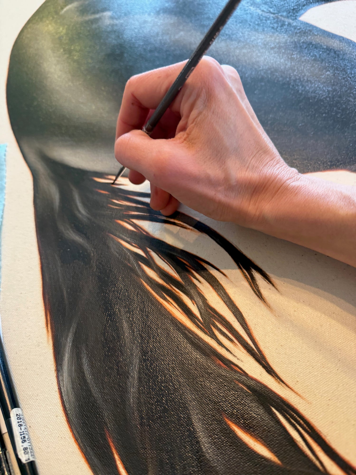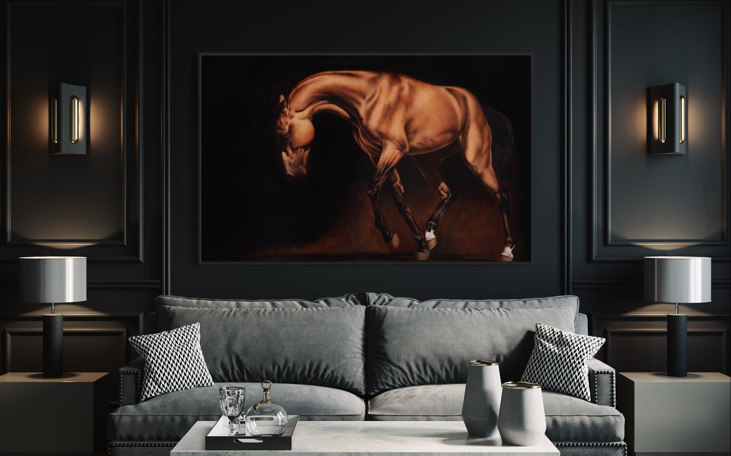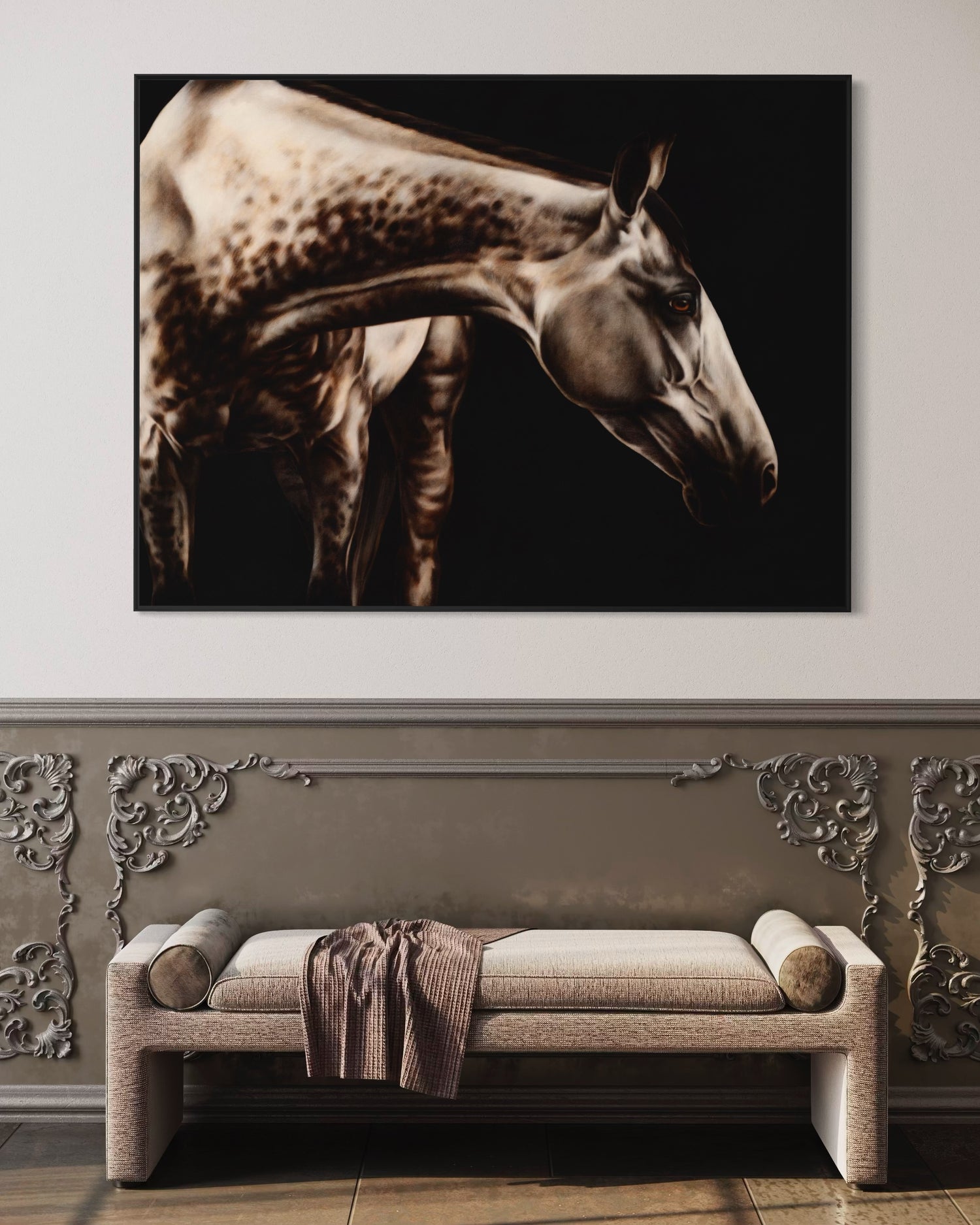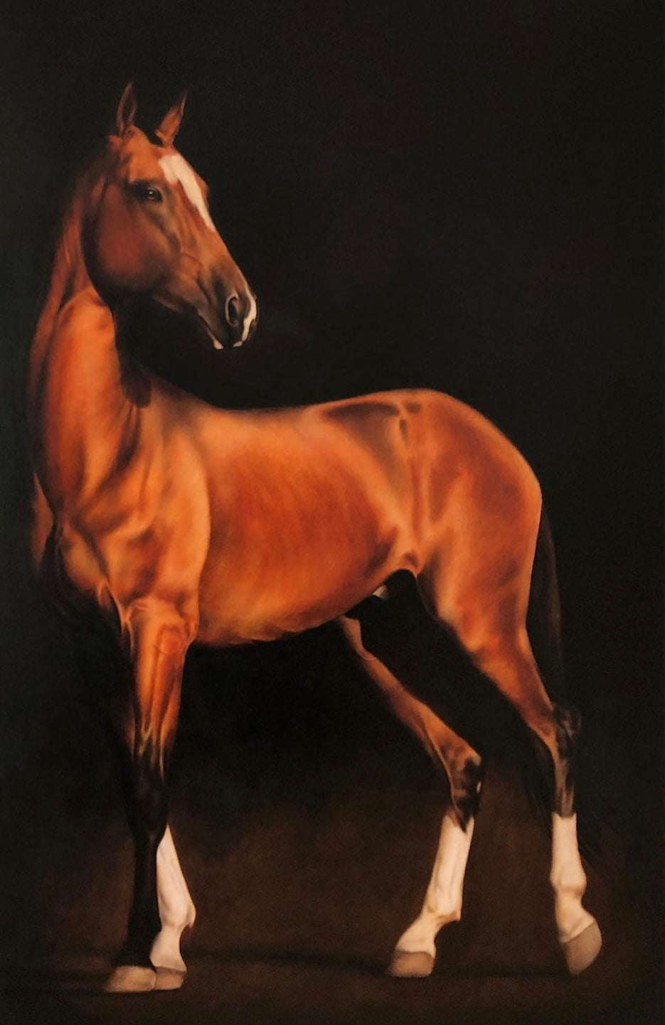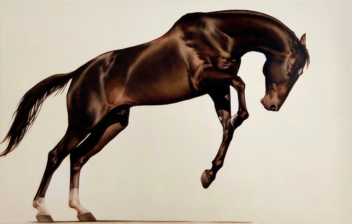 Une fois l’étude approuvée, la peinture à l’huile finale est exécutée avec soin et précision par l’artiste de renom Éloïse Brodeur. Il en résulte une œuvre intemporelle, conçue pour honorer le cheval avec toute la noblesse que sa présence inspire.
